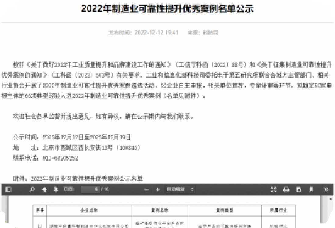 賦能行業(yè)高質(zhì)量發(fā)展,積極推進數(shù)字化、智能化、綠色化轉(zhuǎn)型,“基于高空作業(yè)平臺產(chǎn)品的可靠性提升方案〞成功入選工信部2022年制造業(yè)可靠性提升優(yōu)秀案例。