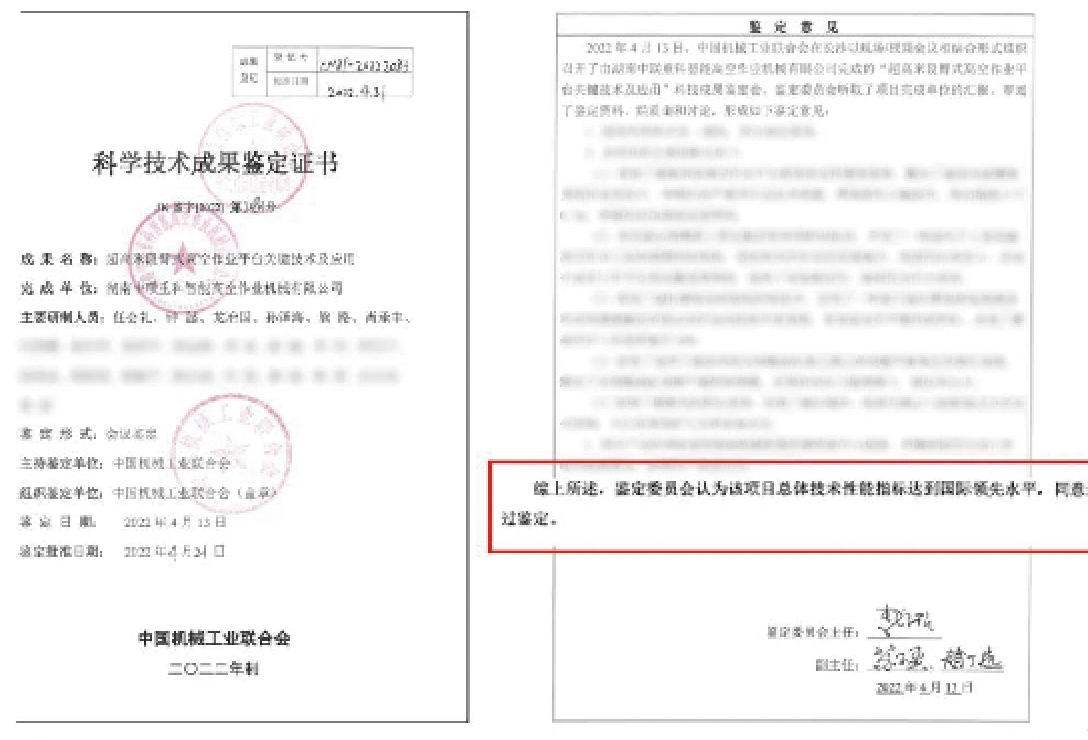 創(chuàng)新成果領(lǐng)跑全球,“超高米段臂式高空作業(yè)平臺關(guān)鍵技術(shù)及應(yīng)用〞通過科技成果鑒定。
